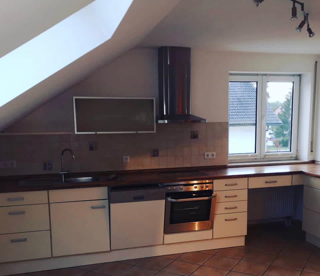 Die vorhandene Einbauküche ist mit im Wohnbereich und mit einem Fenster ausgestattet.